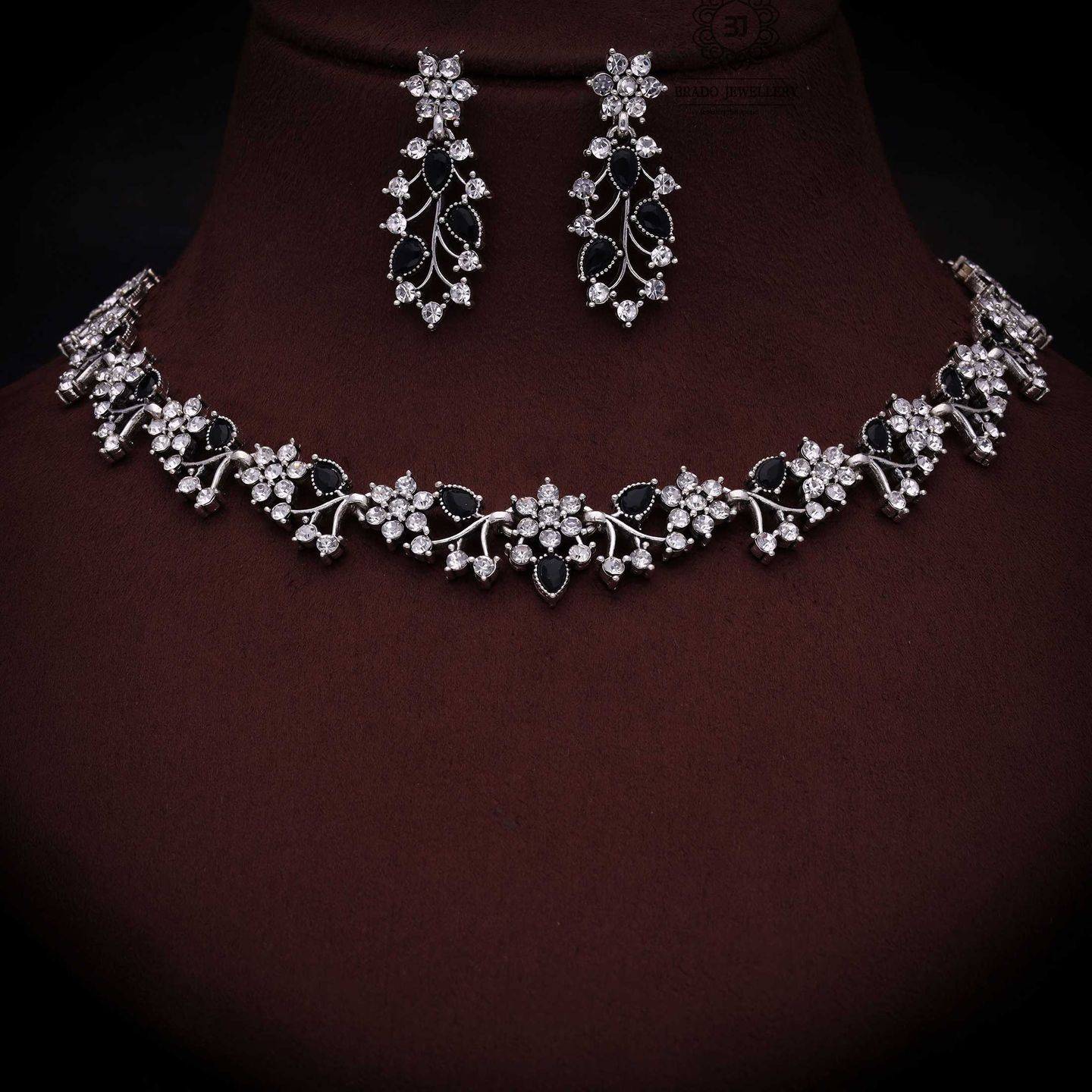 Rhodium Silver Polish Zircon Ad Diamond Choker Set For Women and Girls